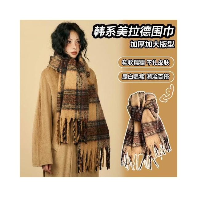 台灣免運拉德復古圍巾冬季高級百搭新款流蘇加厚圍脖格子學生情侶披肩保暖3874
