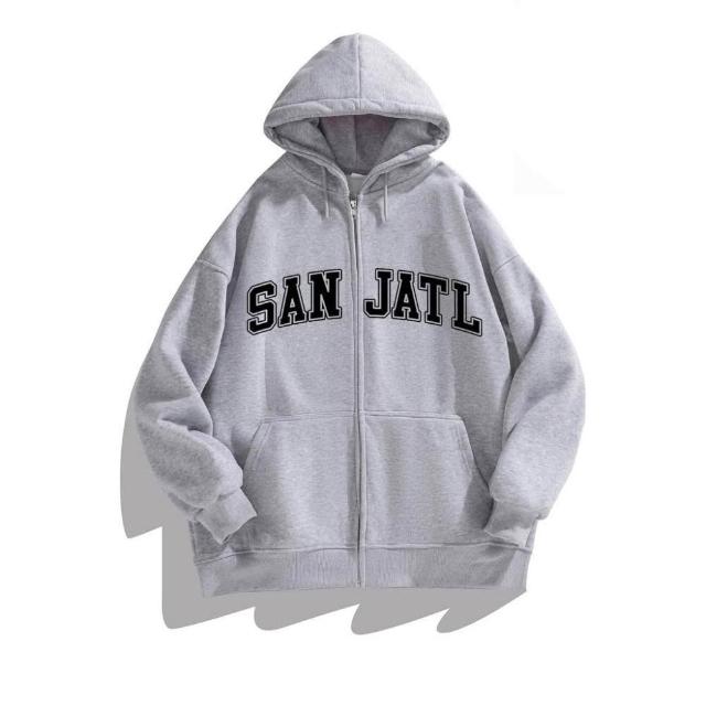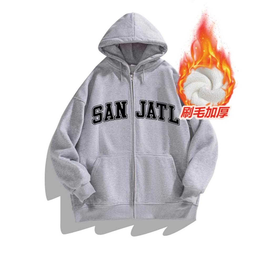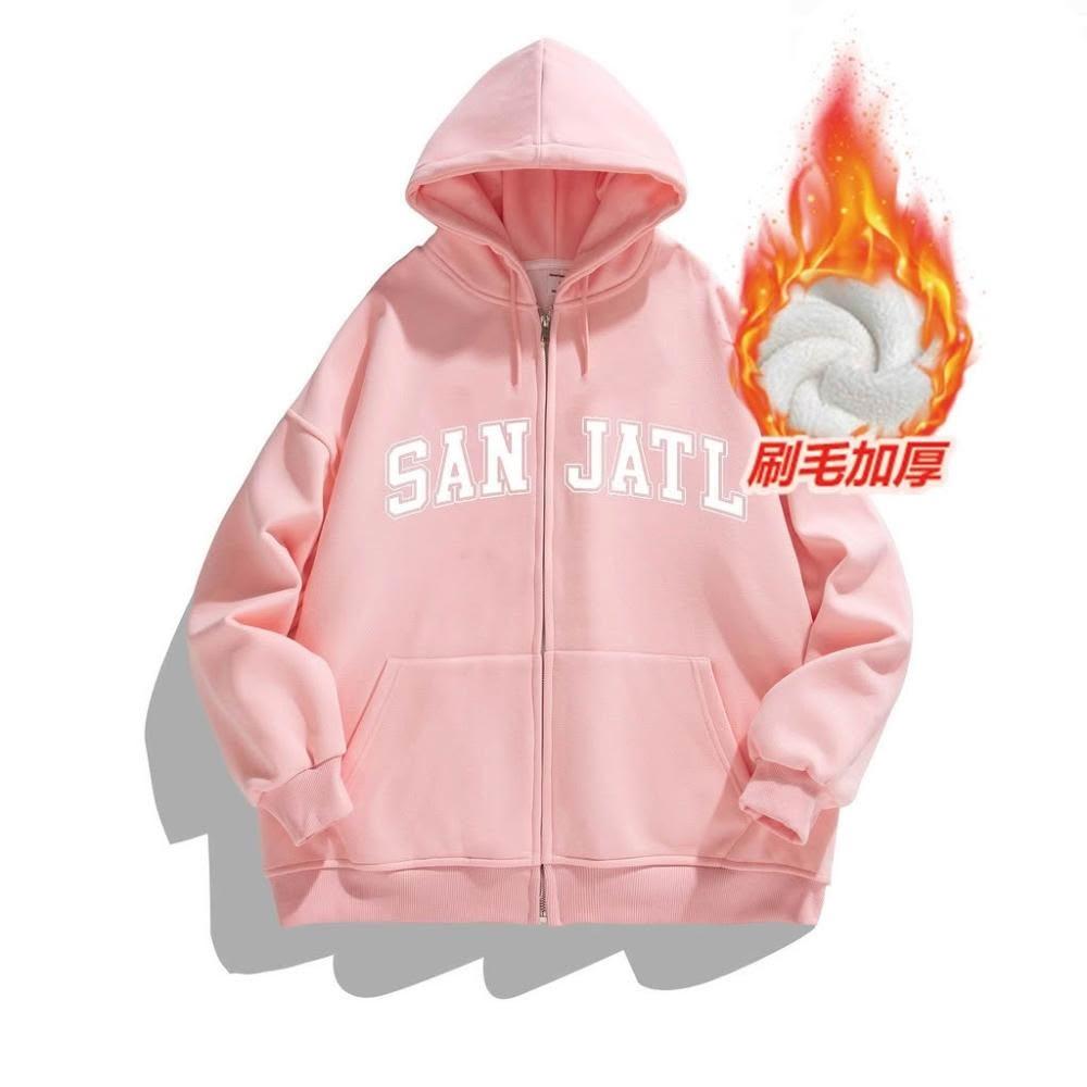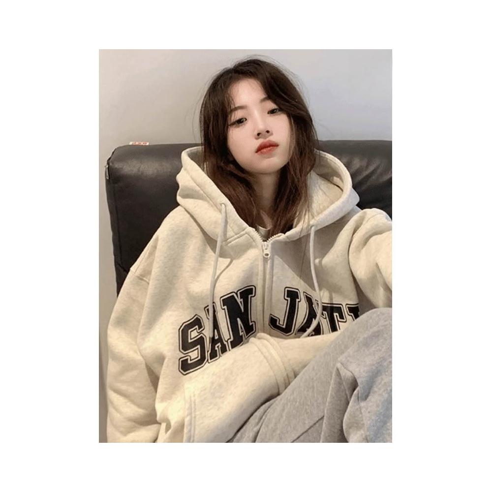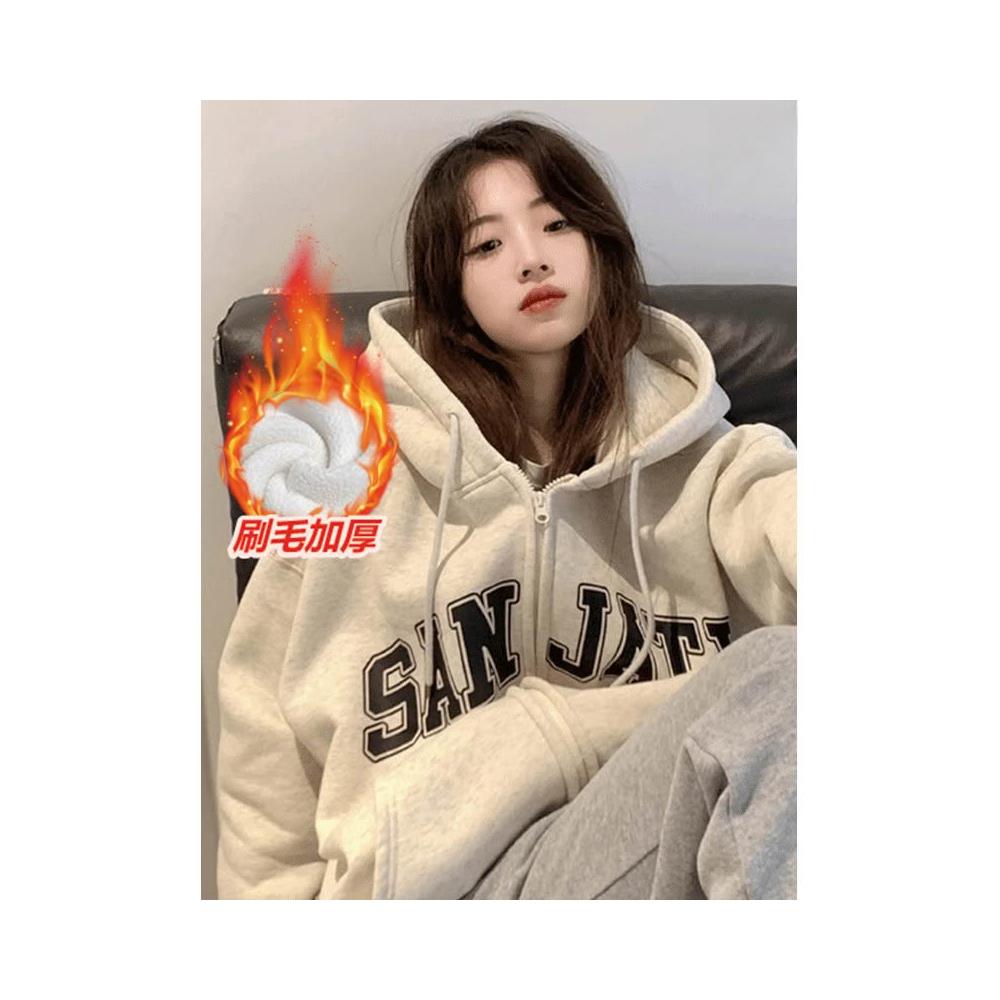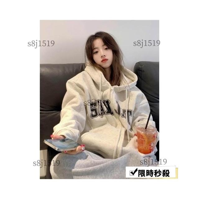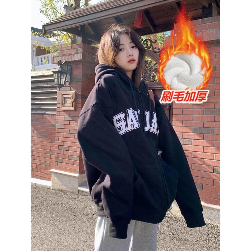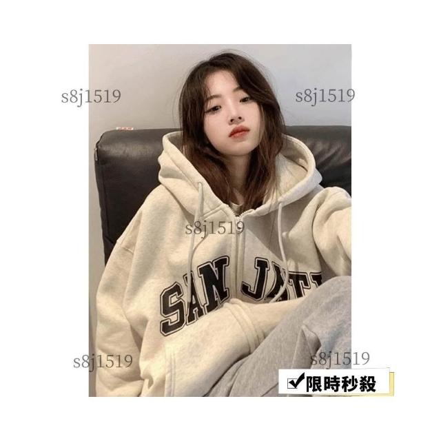女生外套 拉鏈外套 美式復古連帽外套 oversize 寬鬆外套 連帽衛衣 外套女 開衫上衣 刷毛加絨 秋冬W0250B