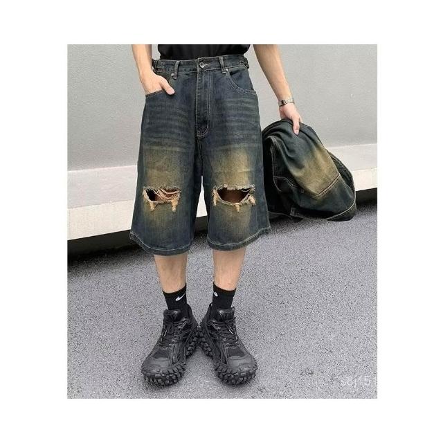 熱賣爆款 美式水洗做舊馬甲牛仔褲套裝男女夏季寬鬆無袖夾克外套破洞五分褲