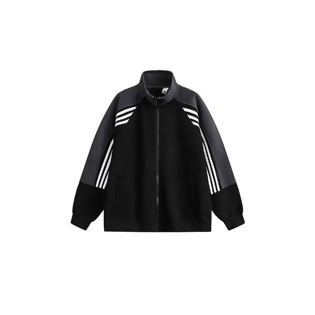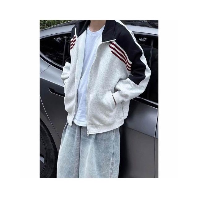台灣免運撞色2025三條開衫拼接衛衣男女立領復古寬鬆情侶條紋夾克外套899