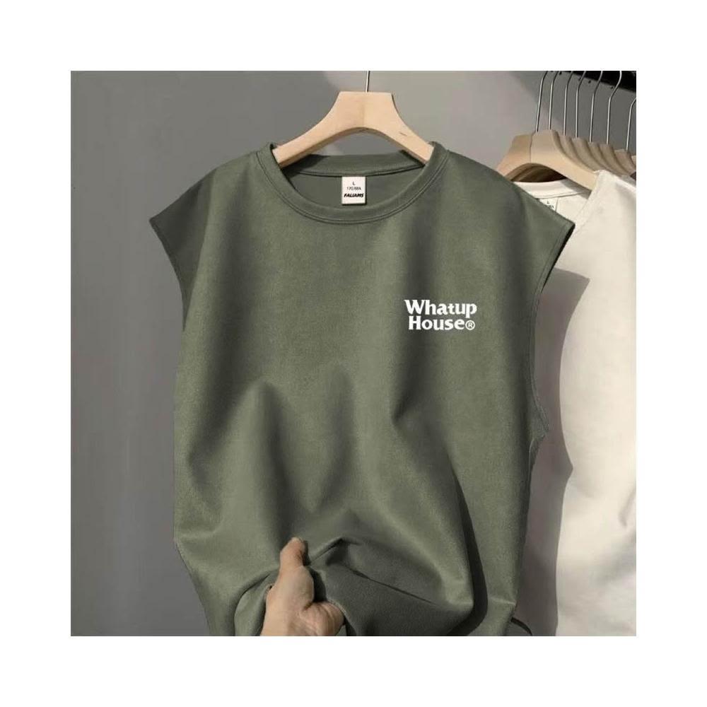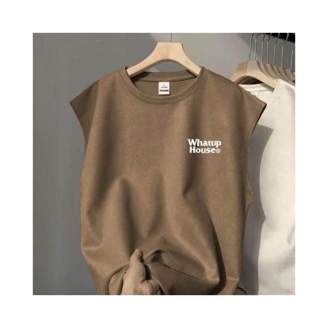 台灣免運麂皮絨背心男生夏季新款簡約字母印花無袖坎肩圓領加大碼潮流t恤3621