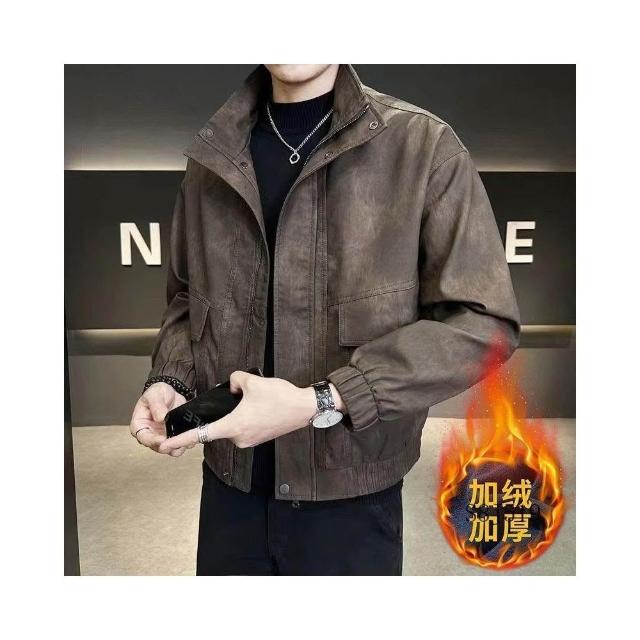 外套男秋冬款機車皮衣加絨加厚夾克男士2025新款潮牌上衣痞帥立領