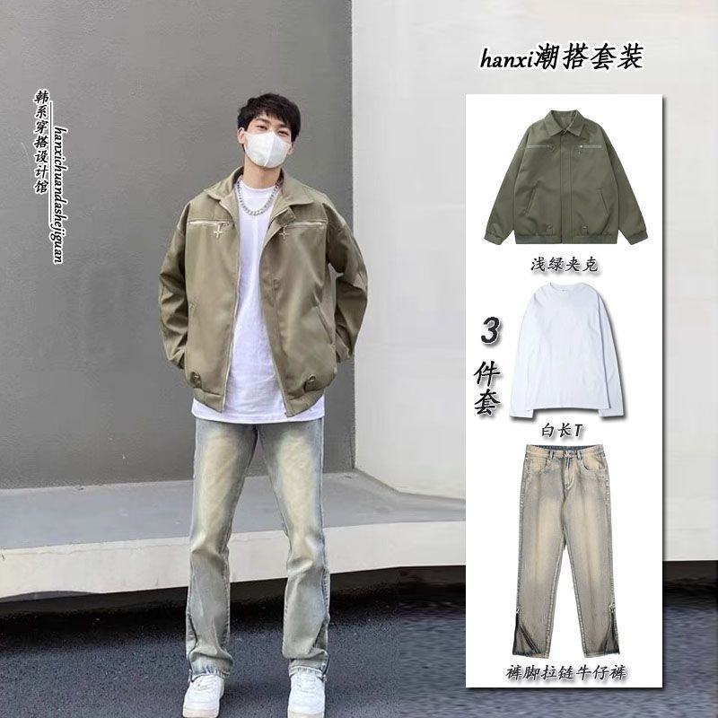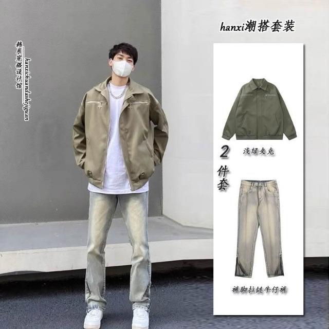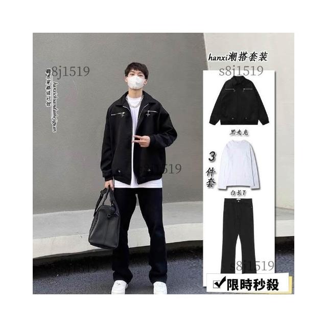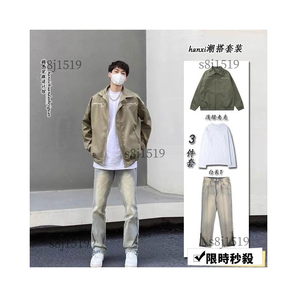 台灣免運網紅立領夾剋套裝新款學生夾剋秋季cleanfit外套男衣服一整套全身704
