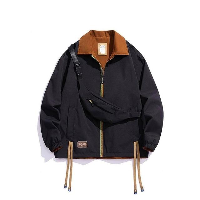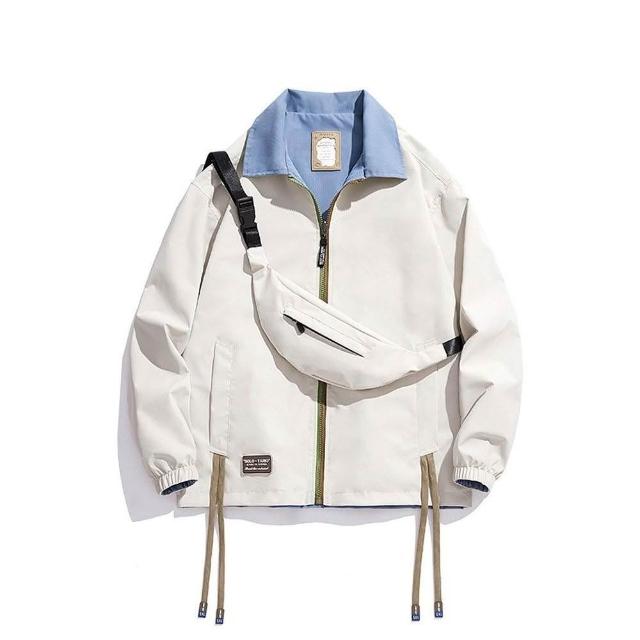 熱賣爆款 【桃園出貨】配帶包包雙麵穿韓版休閒潮流夾克男修身男裝雙麵百搭上衣外套情侶