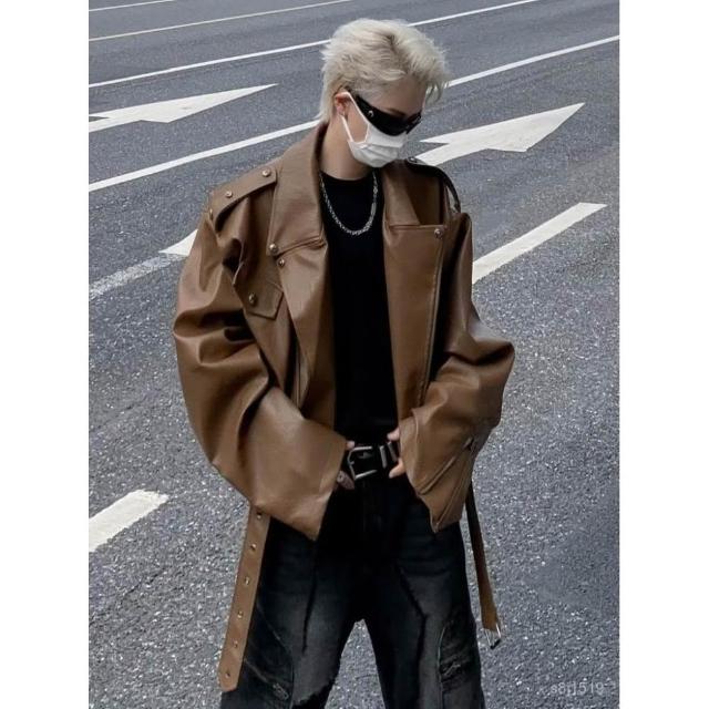 熱賣爆款 秋季高級感墊肩機車服皮衣短款男士外套美式潮流寬鬆痞帥pu皮夾克