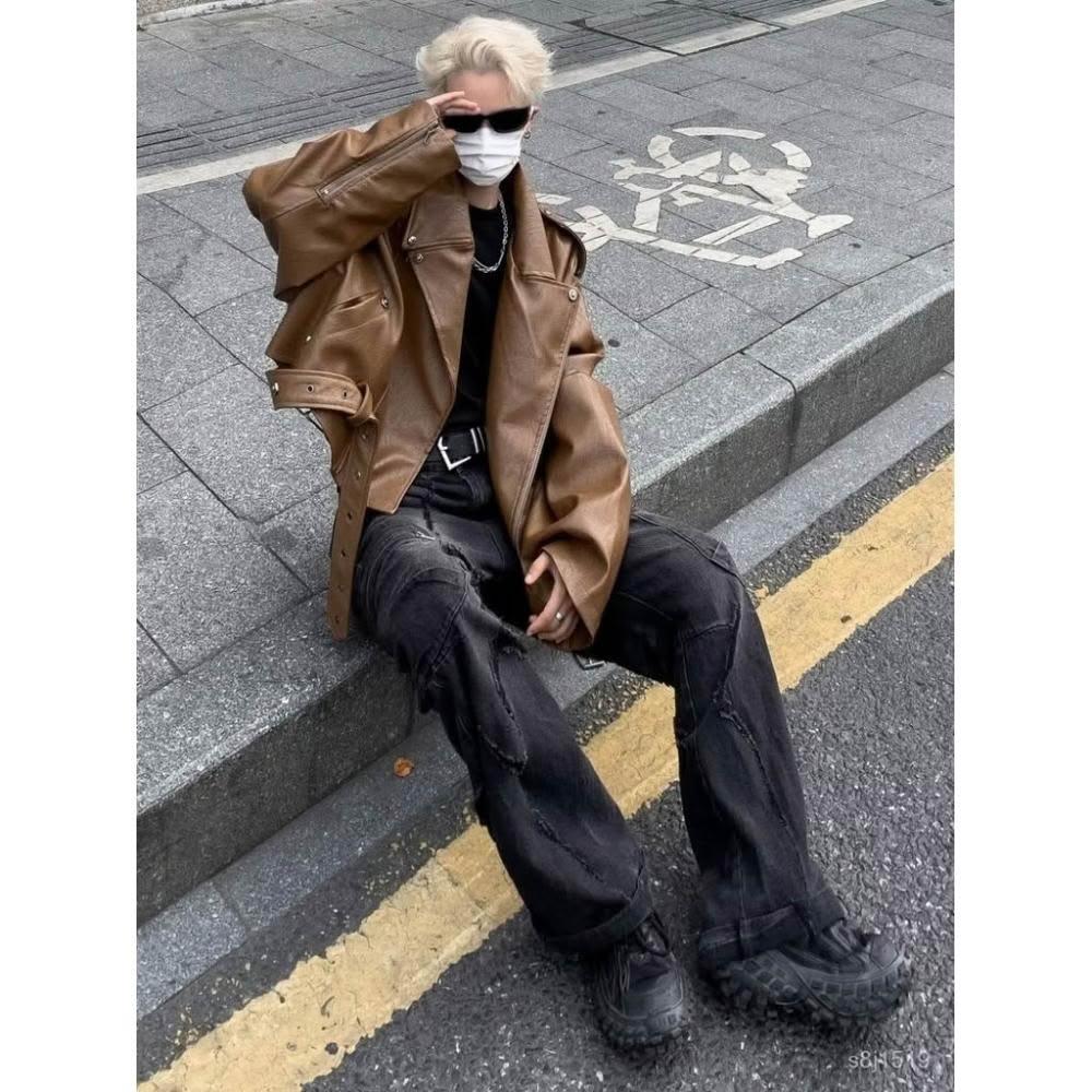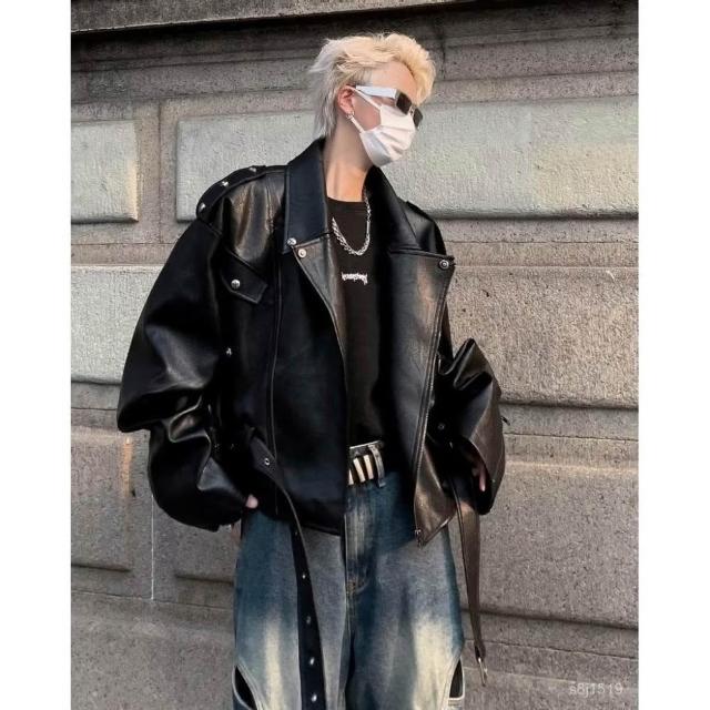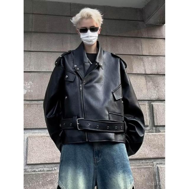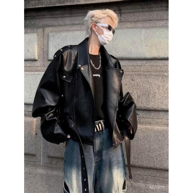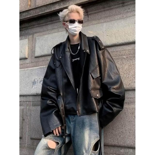 熱賣爆款 秋季高級感墊肩機車服皮衣短款男士外套美式潮流寬鬆痞帥pu皮夾克