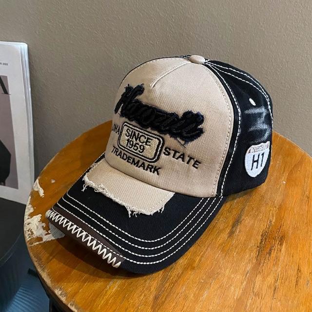 美式复古做旧牛仔红色棒球帽女2025年春新款大头围显脸小鸭舌帽子