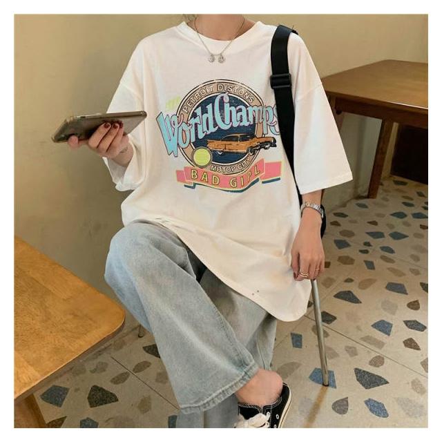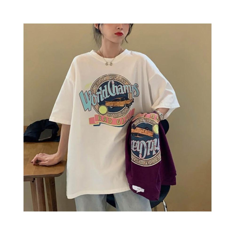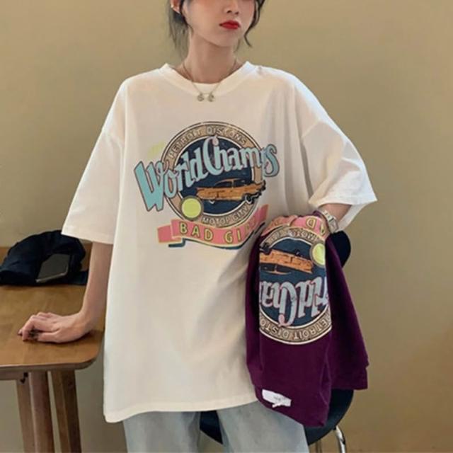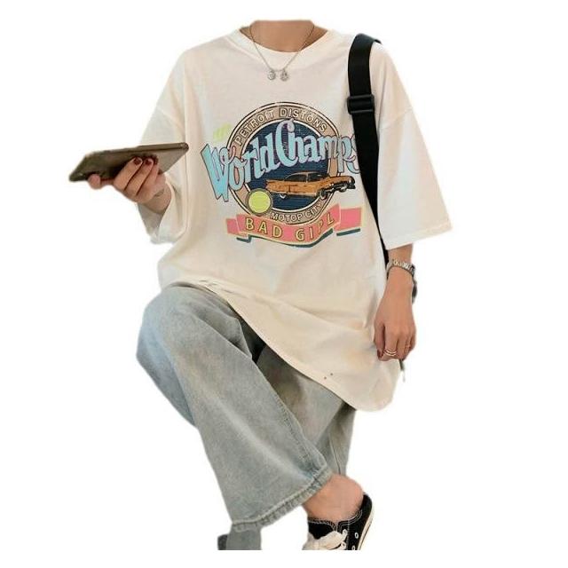 信嶼 美式復古潮流字母印花T恤休閑女裝新款短袖百搭套頭顯瘦上衣