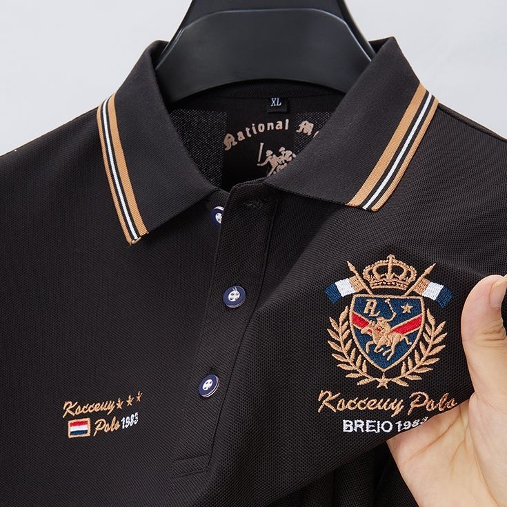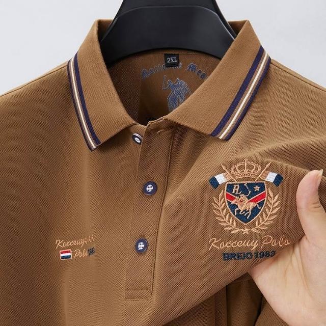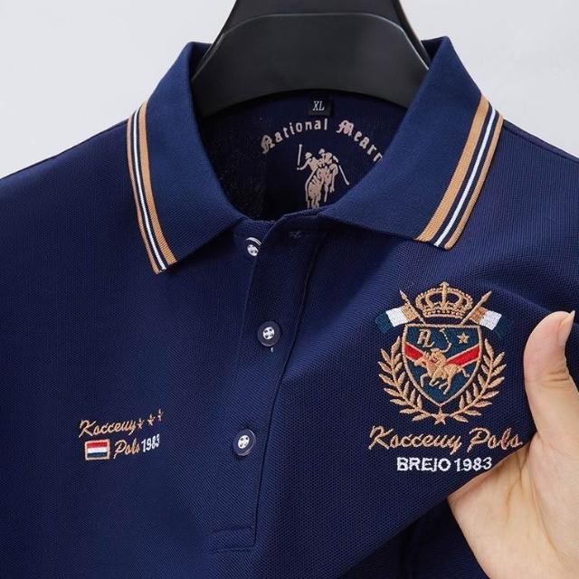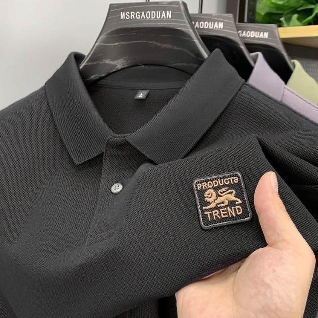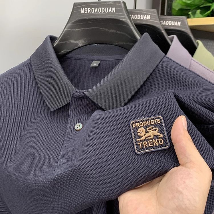 夏季外貿新款刺繡100重磅寬松珠地POLO衫翻領紫色t恤男士短袖t恤