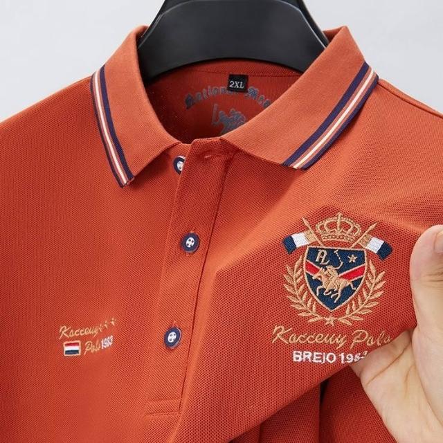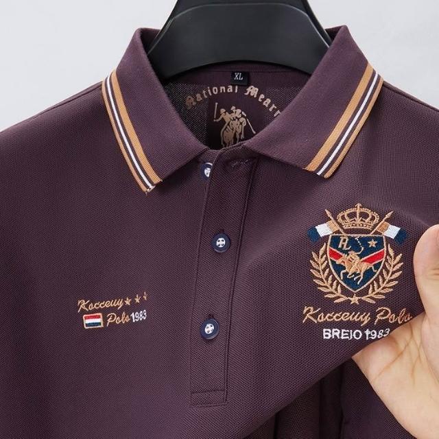 夏季外貿新款刺繡100重磅寬松珠地POLO衫翻領紫色t恤男士短袖t恤