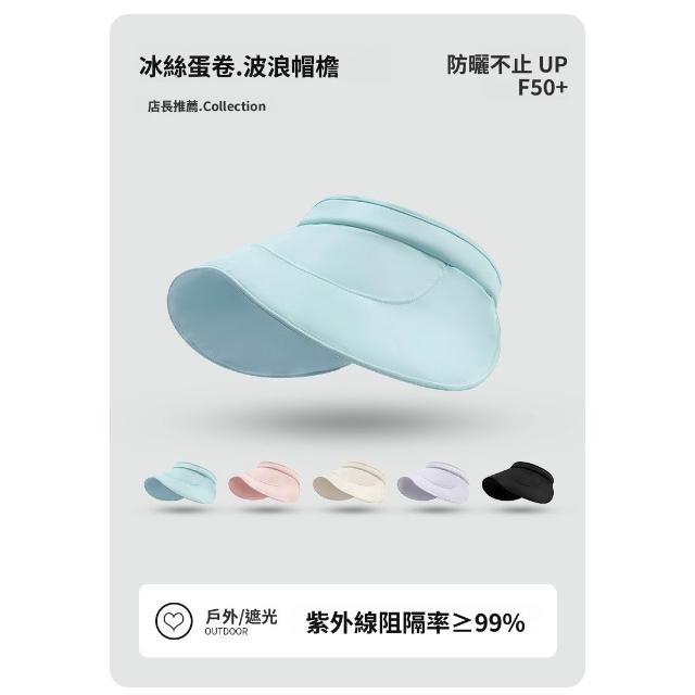 夏季柔軟涼感冰絲蛋卷帽大檐防曬遮陽可折疊透氣防紫外線空頂帽