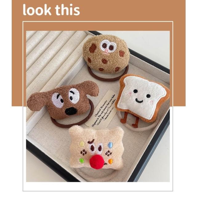 <聖誕節 交換禮物> 韓風吐司 狗狗 餅乾 毛絨公仔可愛少女髮圈