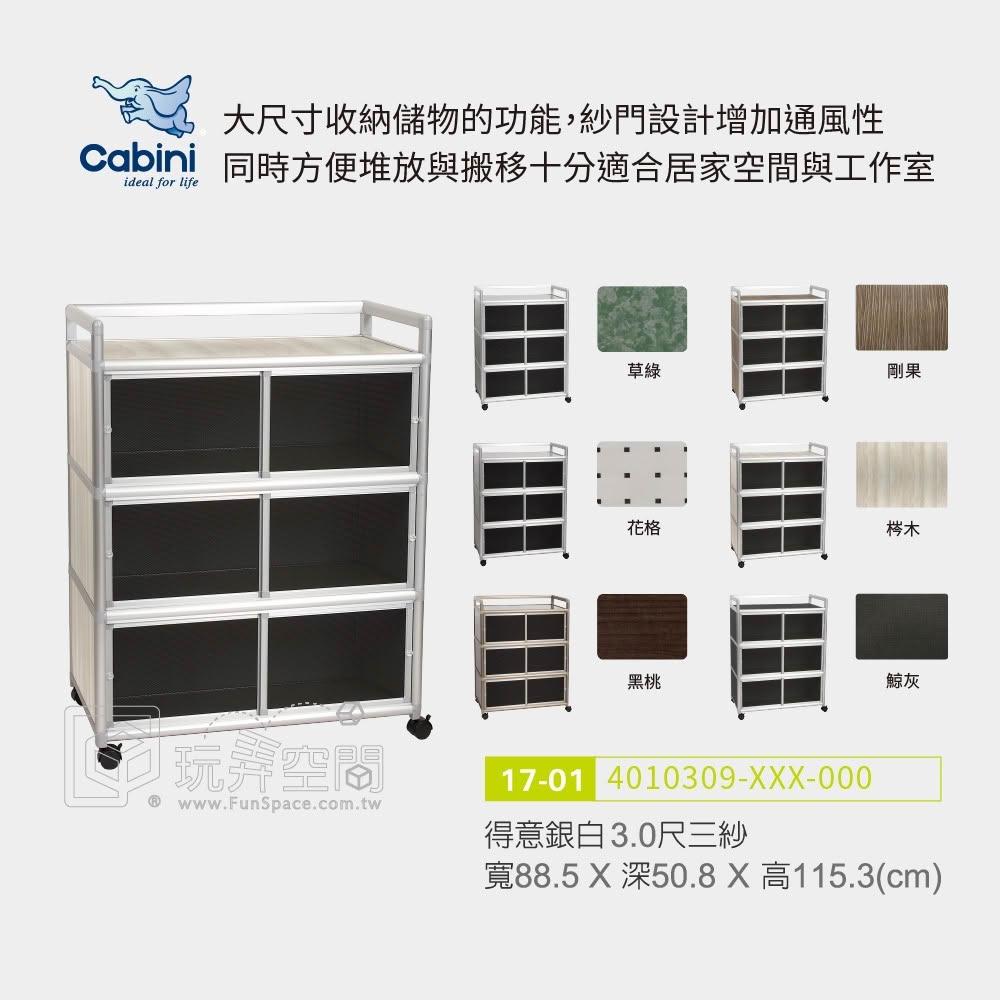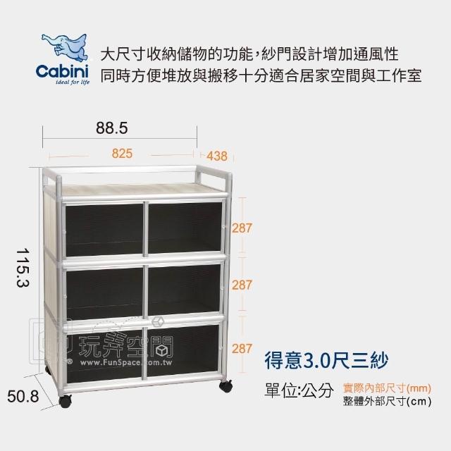 Cabini 小飛象得意3.0尺雙紗門三層置物櫃/櫥櫃/收納櫃/邊櫃-台灣製造