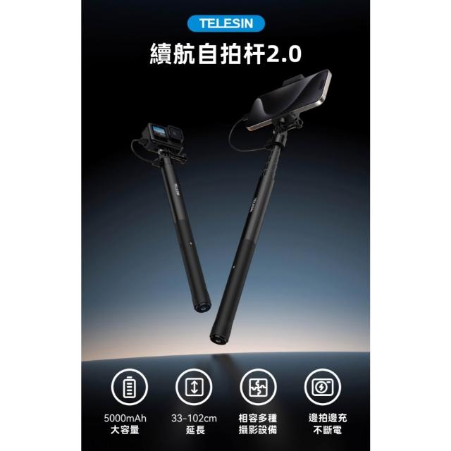TELESINTELESIN 充電自拍桿2.0 鋁合金腳架 自拍棒 轉接 運動相機 acepro2 gopro 手機 配件