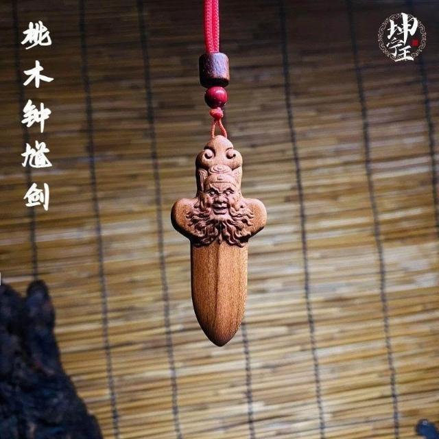 闢飾物桃木鐘馗劍木雕飾品吊墜掛件項鍊鑰匙扣鍾馗裝飾工藝品車載