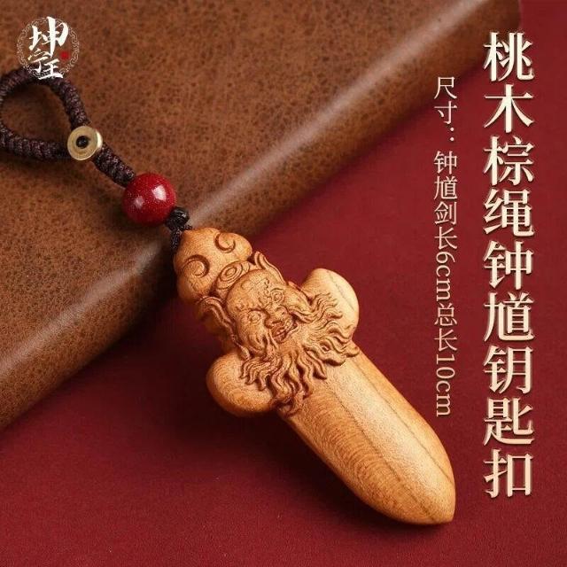 闢飾物桃木鐘馗劍木雕飾品吊墜掛件項鍊鑰匙扣鍾馗裝飾工藝品車載