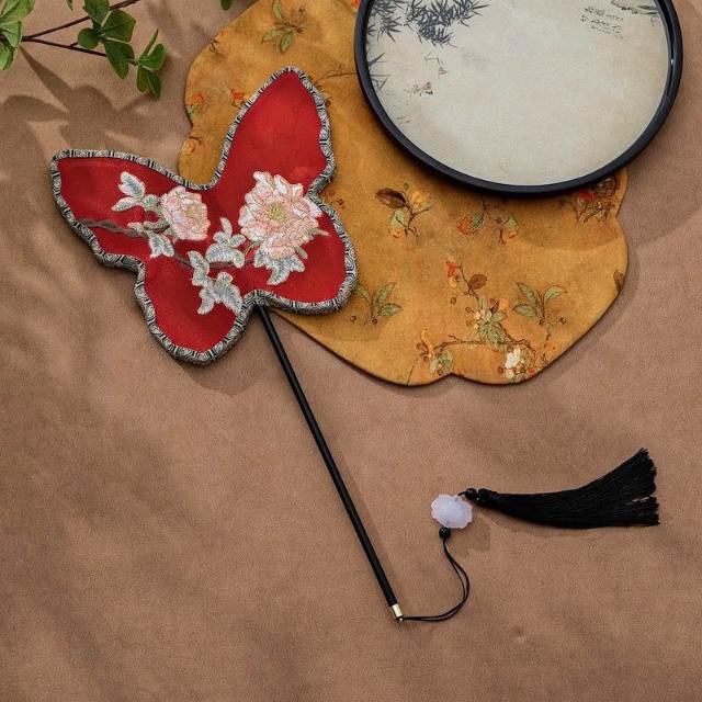 中國風團扇古風漢服長柄宮扇繡花圓扇蝴蝶扇旗袍半透明刺繡扇子