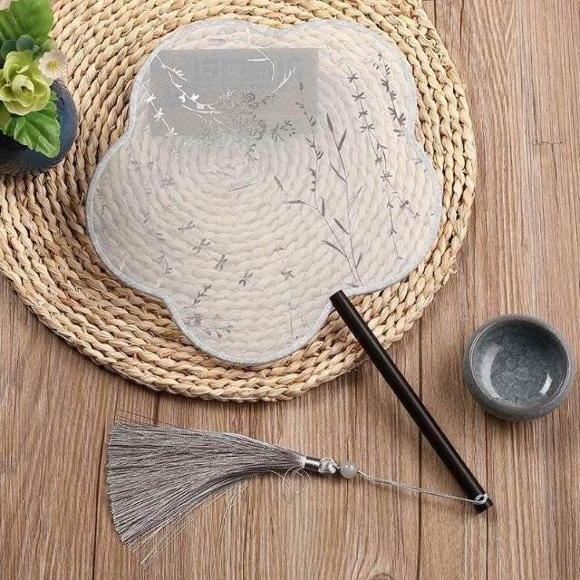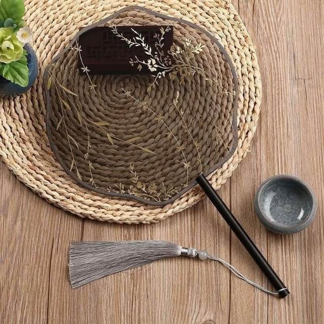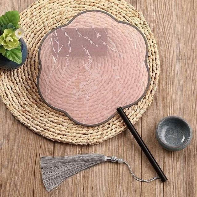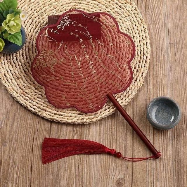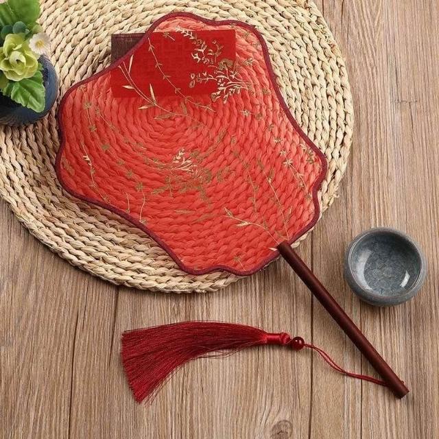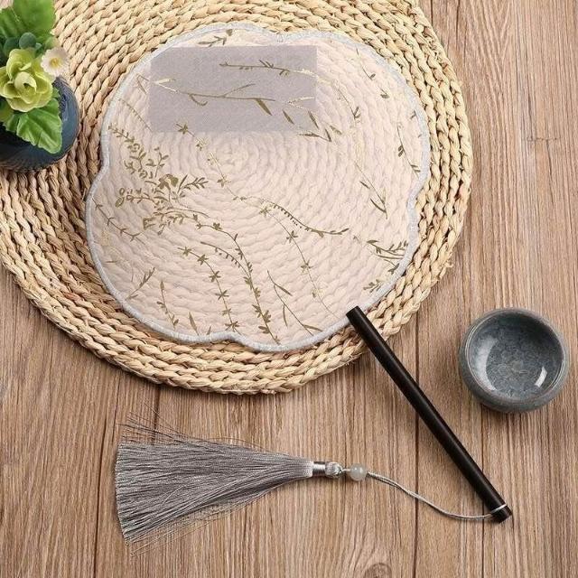 燙金異形古風團扇女式漢服道具舞蹈流蘇宮扇中國風扇子