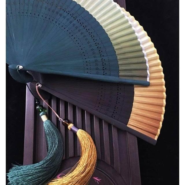 中國風新中式扇子婚禮新娘晨袍古風批發扇黑金舞蹈漸變真絲摺疊扇