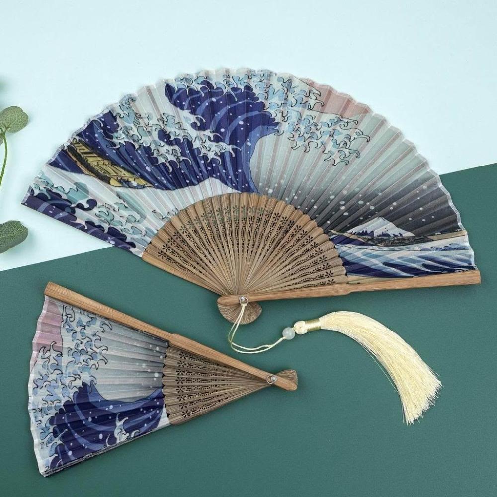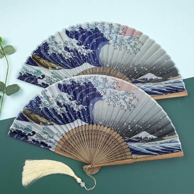 衝浪和風浮世繪神奈川富士山日式扇子古風摺疊女士小巧拍照道具扇