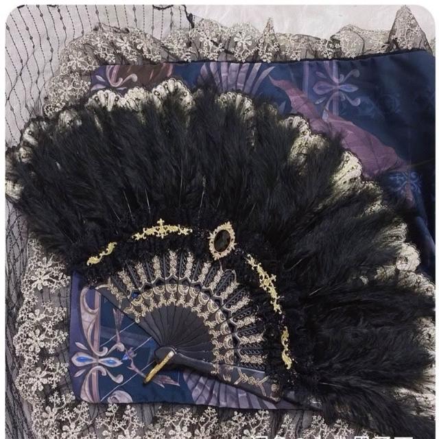 日系洛麗塔復古黑色白色蕾絲lolita浮雕花嫁摺扇扇子茶會羽毛扇