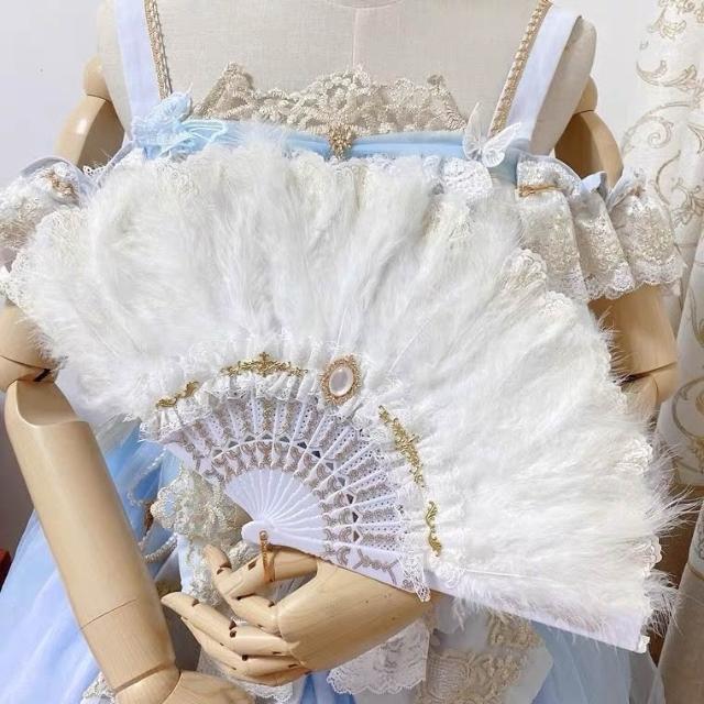 日系洛麗塔復古黑色白色蕾絲lolita浮雕花嫁摺扇扇子茶會羽毛扇