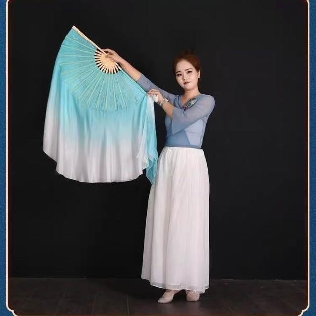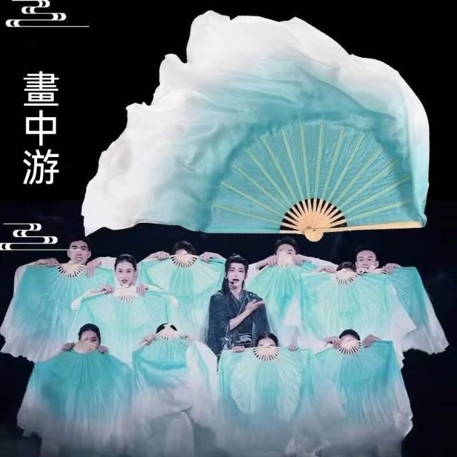 劉宇同款扇子新款跳舞扇薄荷綠漸變古典舞扇膠州秧歌扇谷表演道具