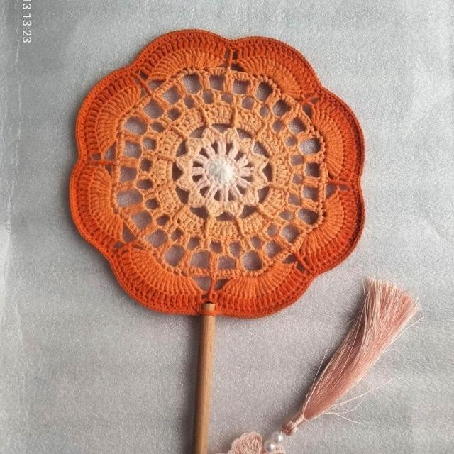 成品手工鉤織中國風漸變色毛線團扇禮物漢服配飾