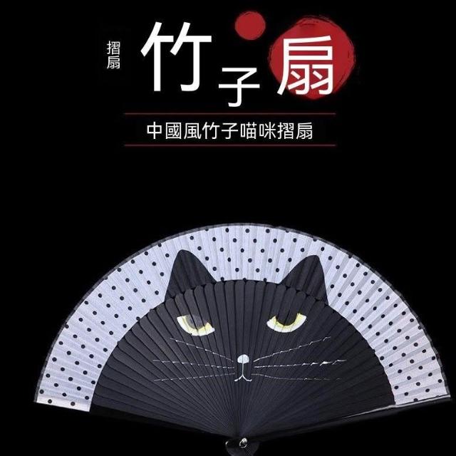 夏天扇子摺扇黑貓中國扇風古風漢服暗黑創意便攜摺疊女式紅色舞蹈