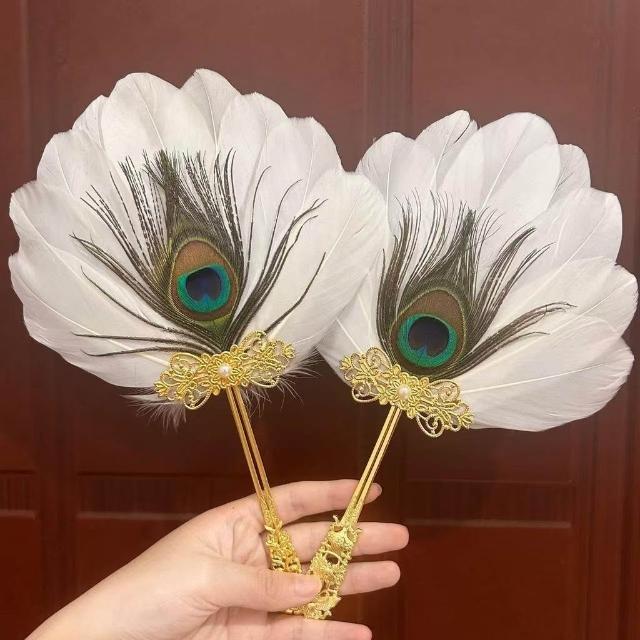 古風羽毛扇漢服配飾團扇手持扇舞臺表演舞蹈攝影晨袍結婚拍照道具