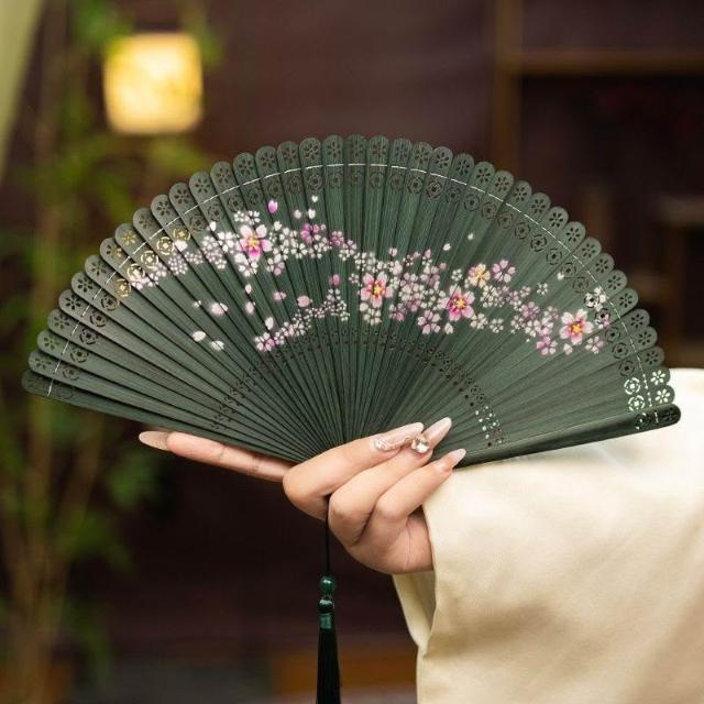 古風全竹扇子雕刻鏤空古風男女士摺扇手工紅黑色小巧舞