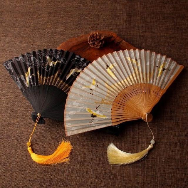 摺扇古風仙鶴贈送扇套夏季日用中式復古典舞蹈漢服拍照摺疊頭清冷
