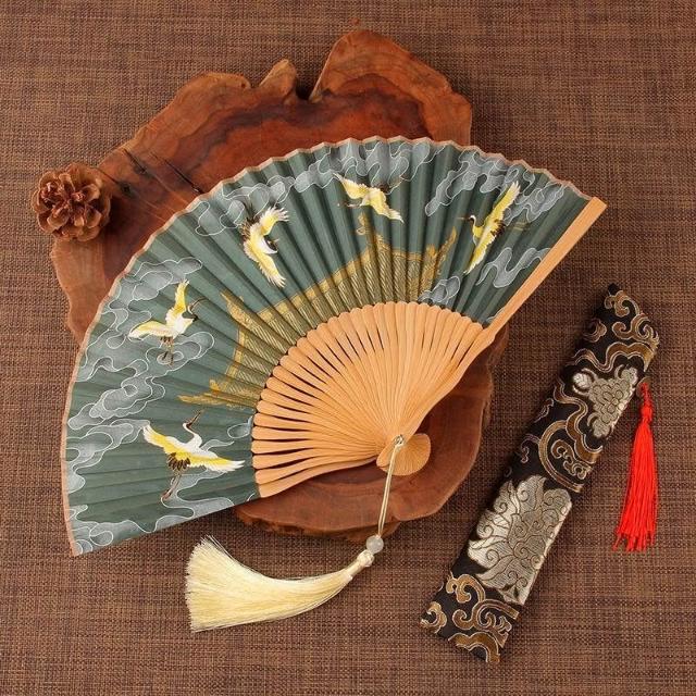 摺扇古風仙鶴贈送扇套夏季日用中式復古典舞蹈漢服拍照摺疊頭清冷