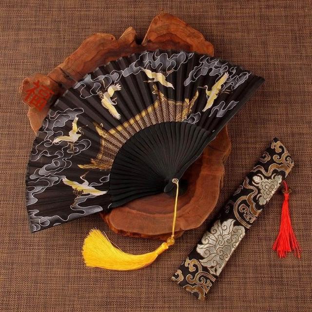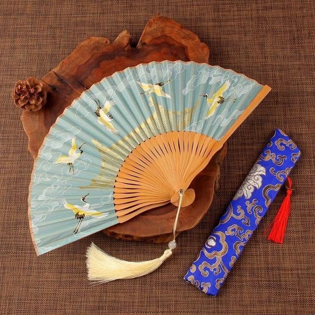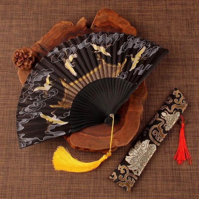 摺扇古風仙鶴贈送扇套夏季日用中式復古典舞蹈漢服拍照摺疊頭清冷