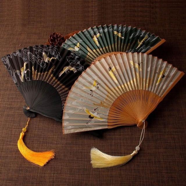 摺扇古風仙鶴贈送扇套夏季日用中式復古典舞蹈漢服拍照摺疊頭清冷