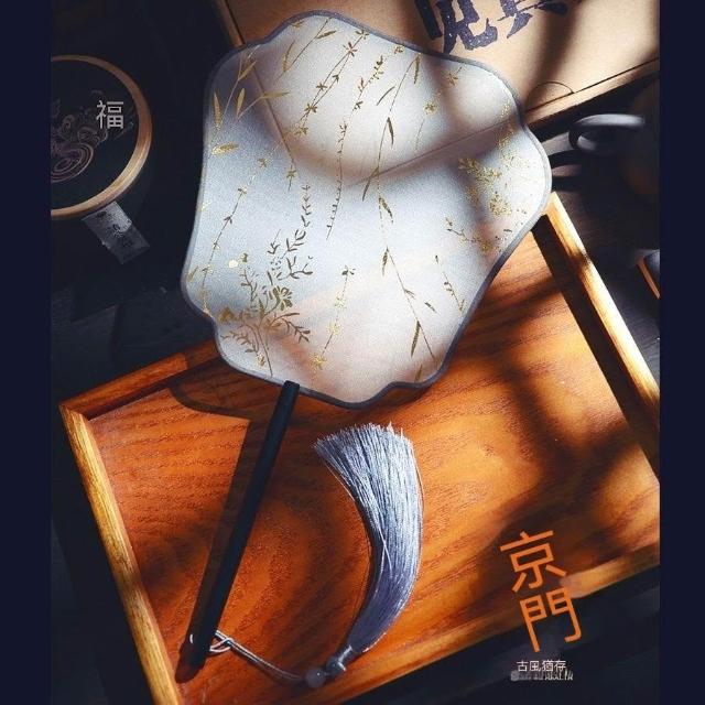 中國風芒種團扇宮扇燙金長柄復古風圓扇攝影扇子漢服女士跳舞蹈扇