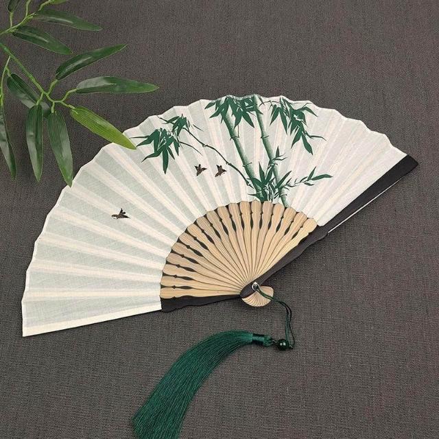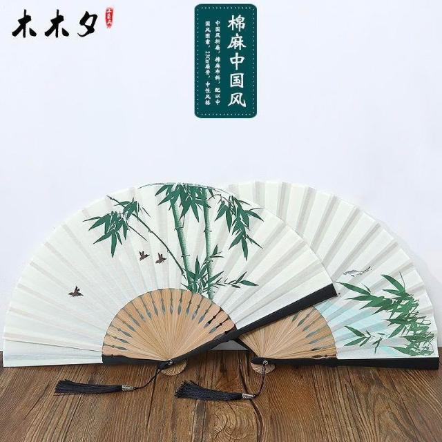 古風中國扇子摺扇復古風男女舞蹈流蘇漢服摺疊古典古裝棉麻竹扇