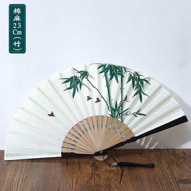 古風中國扇子摺扇復古風男女舞蹈流蘇漢服摺疊古典古裝棉麻竹扇