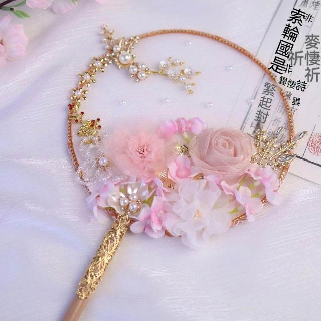 精緻花朵珍珠團扇古風漢服旗袍拍照跳舞百搭手持道具扇新款