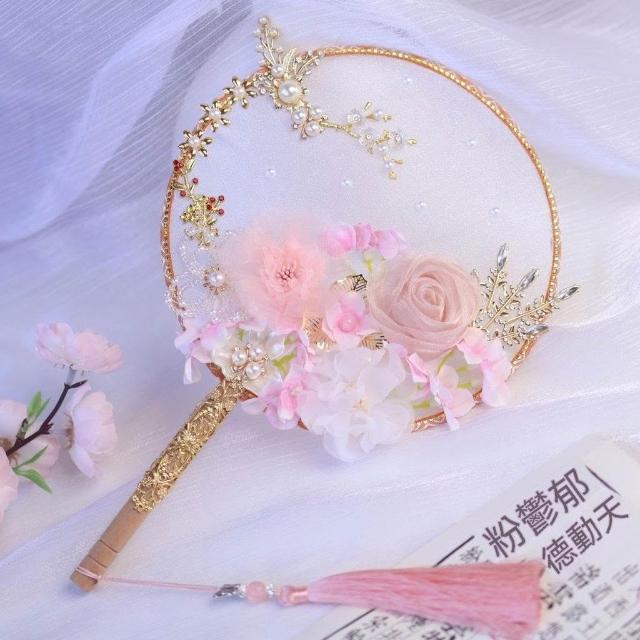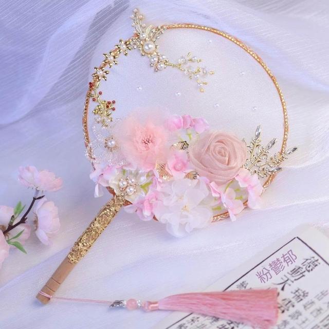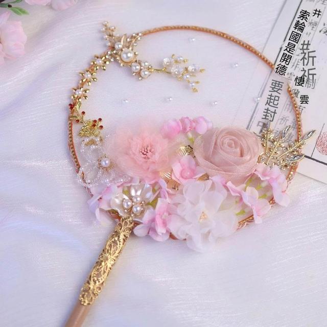 精緻花朵珍珠團扇古風漢服旗袍拍照跳舞百搭手持道具扇新款