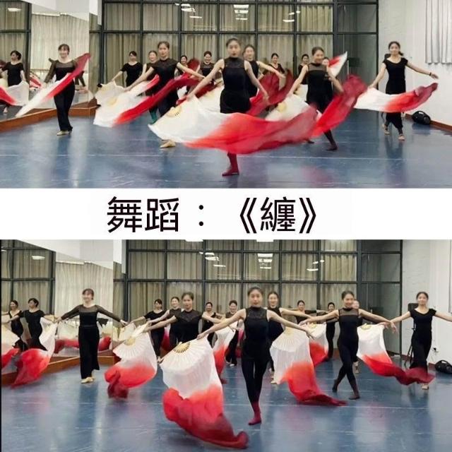 扇子舞蹈扇 生命的河長綢扇子纏 喜慶演出白酒紅漸變膠州秧歌扇子