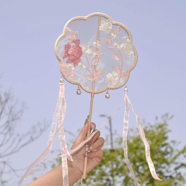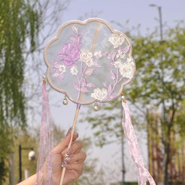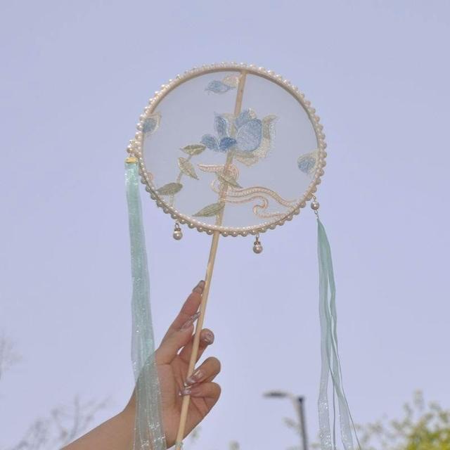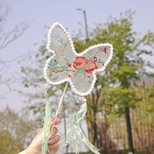 復古風中式舞蹈扇漢服拍照扇子綾絹刺繡中國風古風蝴蝶新款圓扇