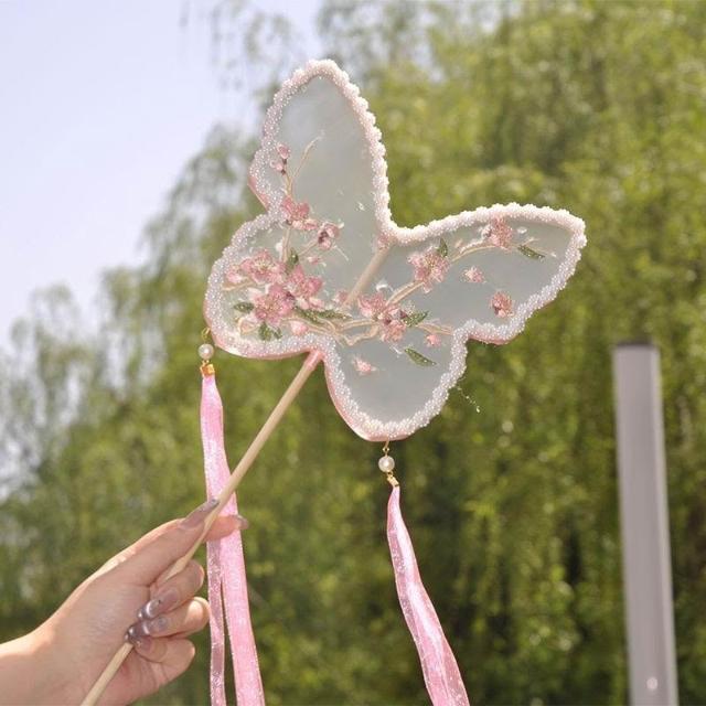 復古風中式舞蹈扇漢服拍照扇子綾絹刺繡中國風古風蝴蝶新款圓扇