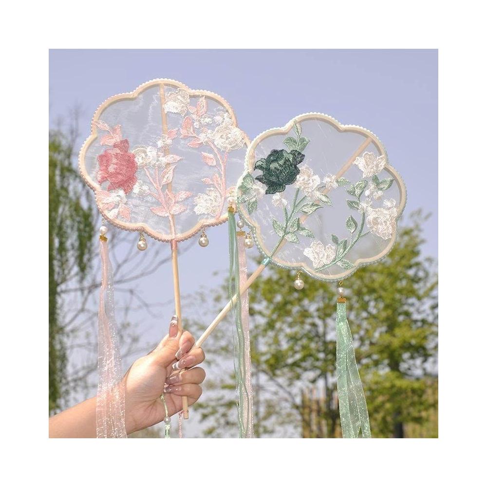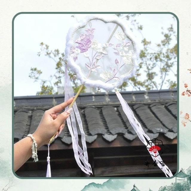 復古風中式舞蹈扇漢服拍照扇子綾絹刺繡中國風古風蝴蝶新款圓扇