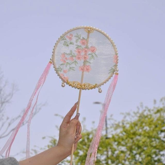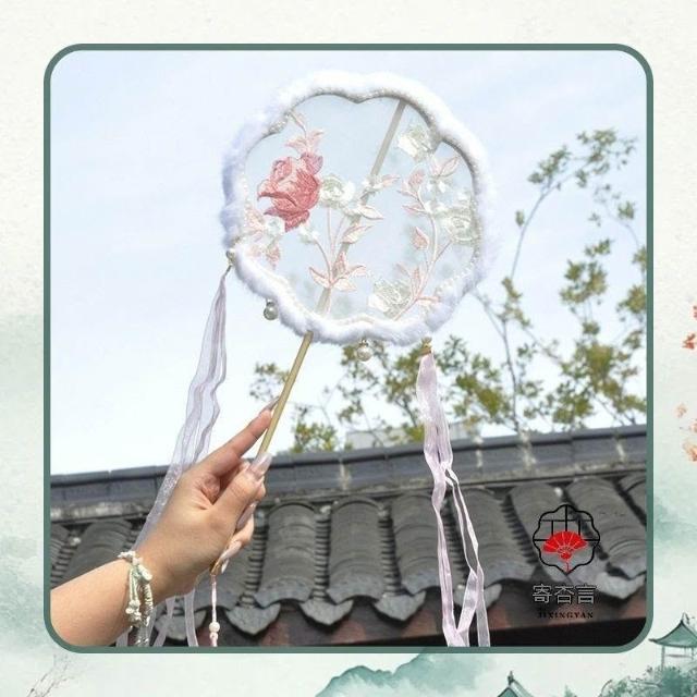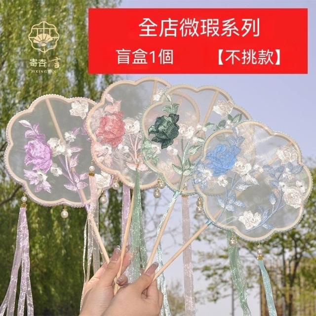 復古風中式舞蹈扇漢服拍照扇子綾絹刺繡中國風古風蝴蝶新款圓扇