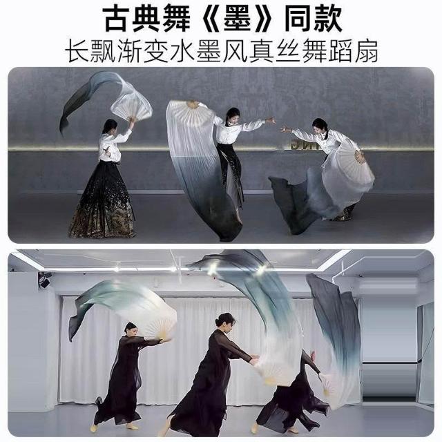 古典舞蹈墨演出長綢扇子長飄漸變水墨風長綢扇廣場舞表演專用道具