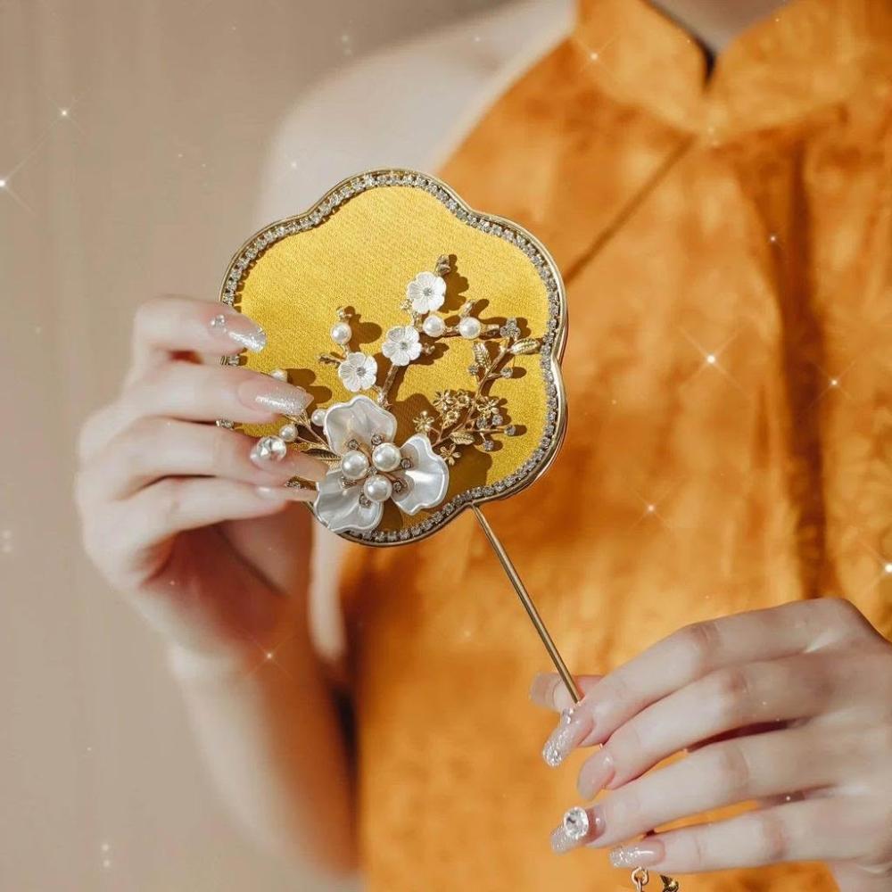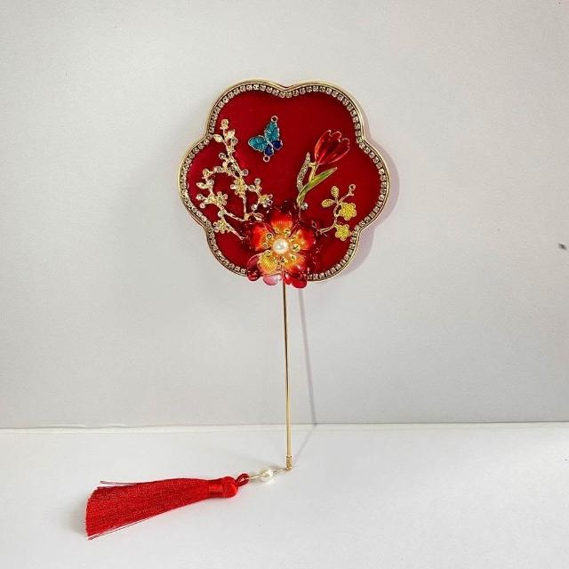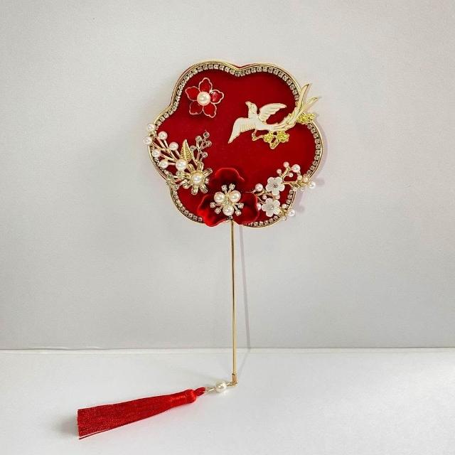 結婚新中式國潮喜扇新娘晨袍迷你小扇子巴掌秀禾團扇婚禮手持道具