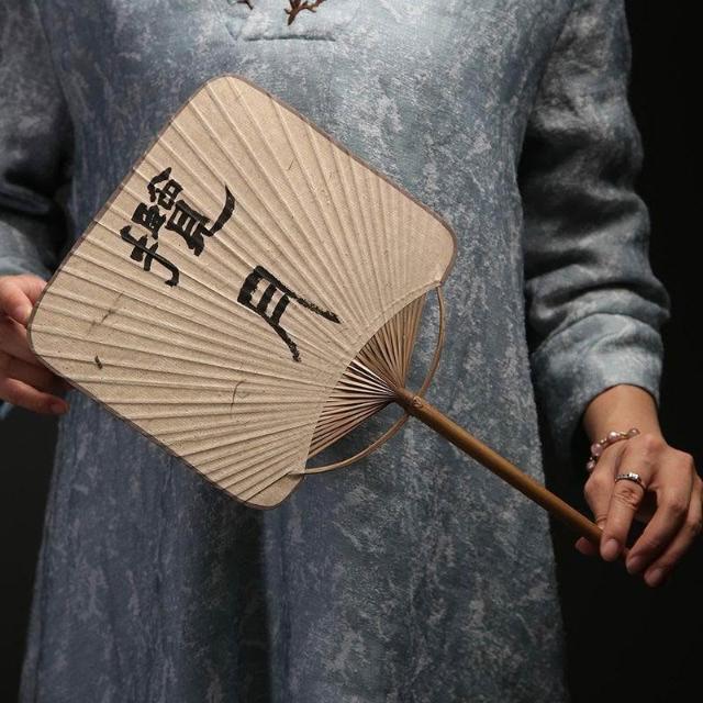 古風diy長柄手寫繪提文字宣紙竹扇空白畫方形中式新中式日舞蹈