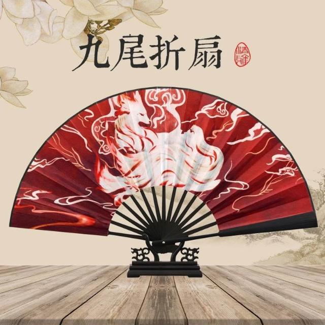 九尾狐扇子古風新中式中國風漢服紅色彼岸花馬面裙摺扇學生摺疊扇