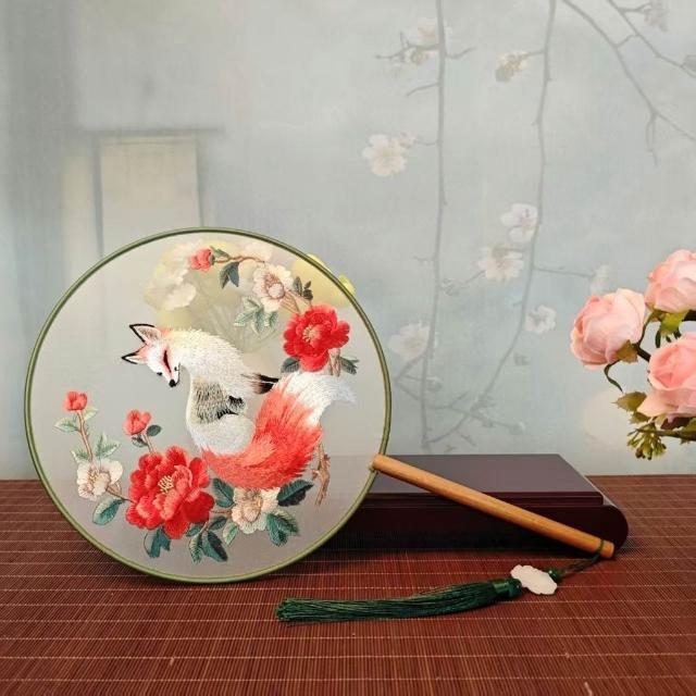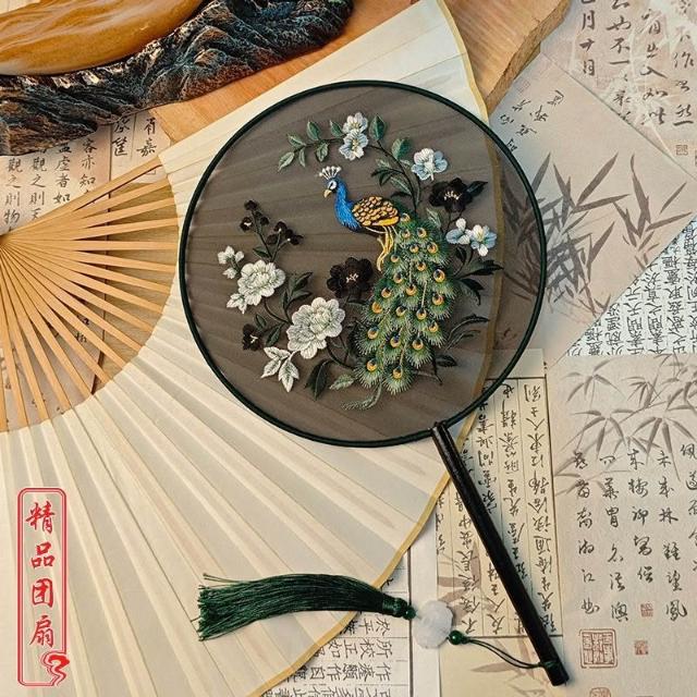 新款原創蝴蝶古風圓扇團扇舞蹈刺繡蘇繡豪華漢服高檔古裝跳舞扇子
